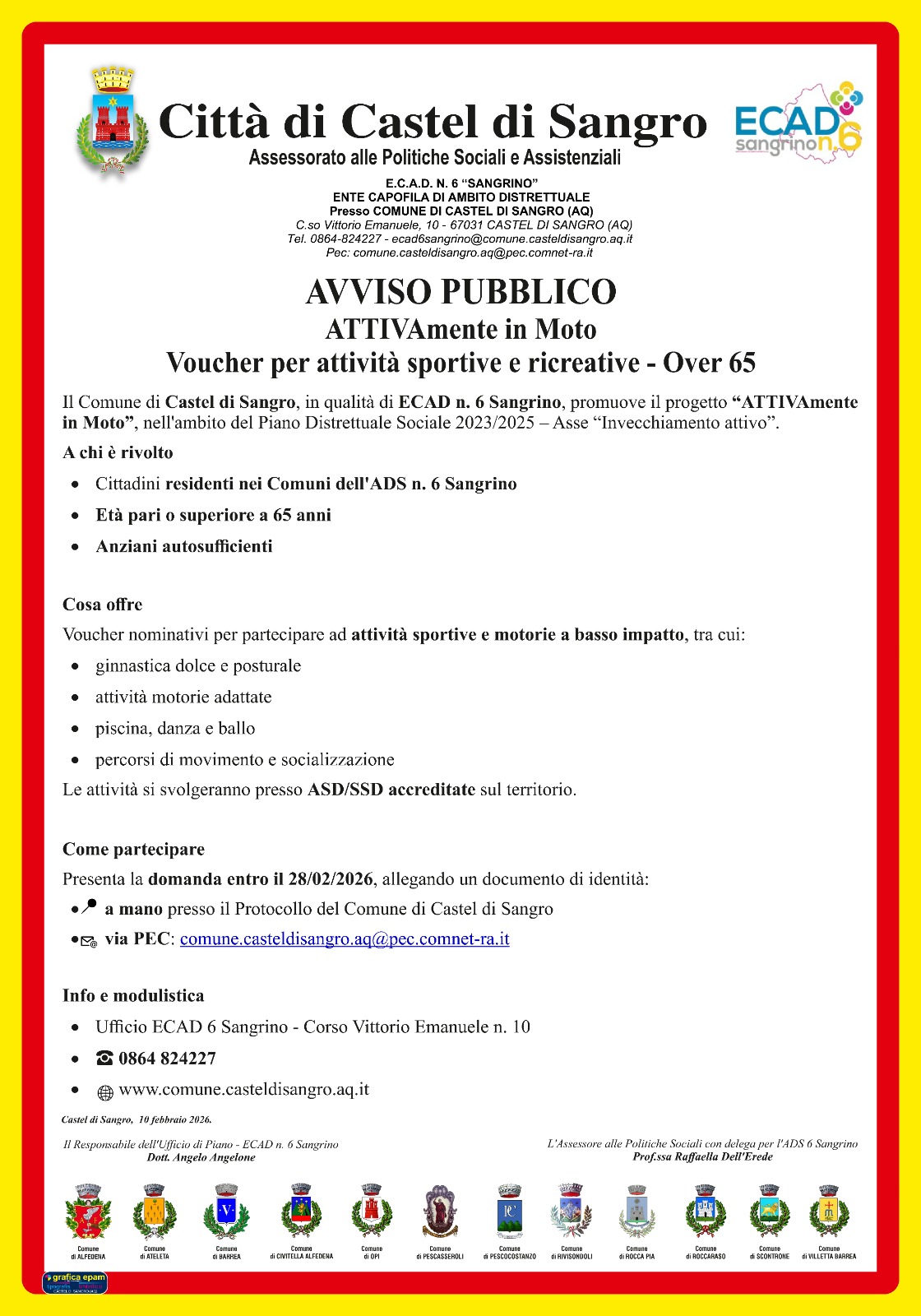 Possono accedere all’iniziativa di cui al presente Avviso, i cittadini residenti nei Comuni ricadenti all’interno dell’Ambito Distrettuale ECAD n. 6 Sangrino, quali Alfedena, Ateleta, Barrea, Castel di Sangro, Civitella Alfedena, Opi, Pescasseroli, Pescocostanzo, Rivisondoli, Roccaraso, Rocca Pia, Scontrone, Villetta Barrea, appartenenti alla seguente categoria: